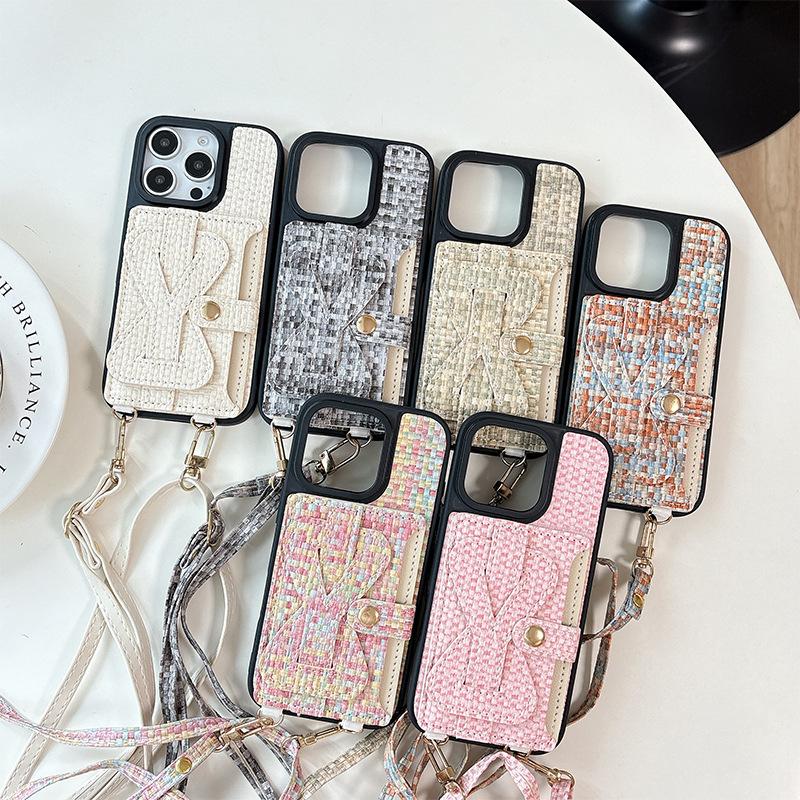 Plaid Wristband Card Holder Wallet Phone Case for Apple 17 Crossbody Cord for IPhone 16promax Leather Fashion