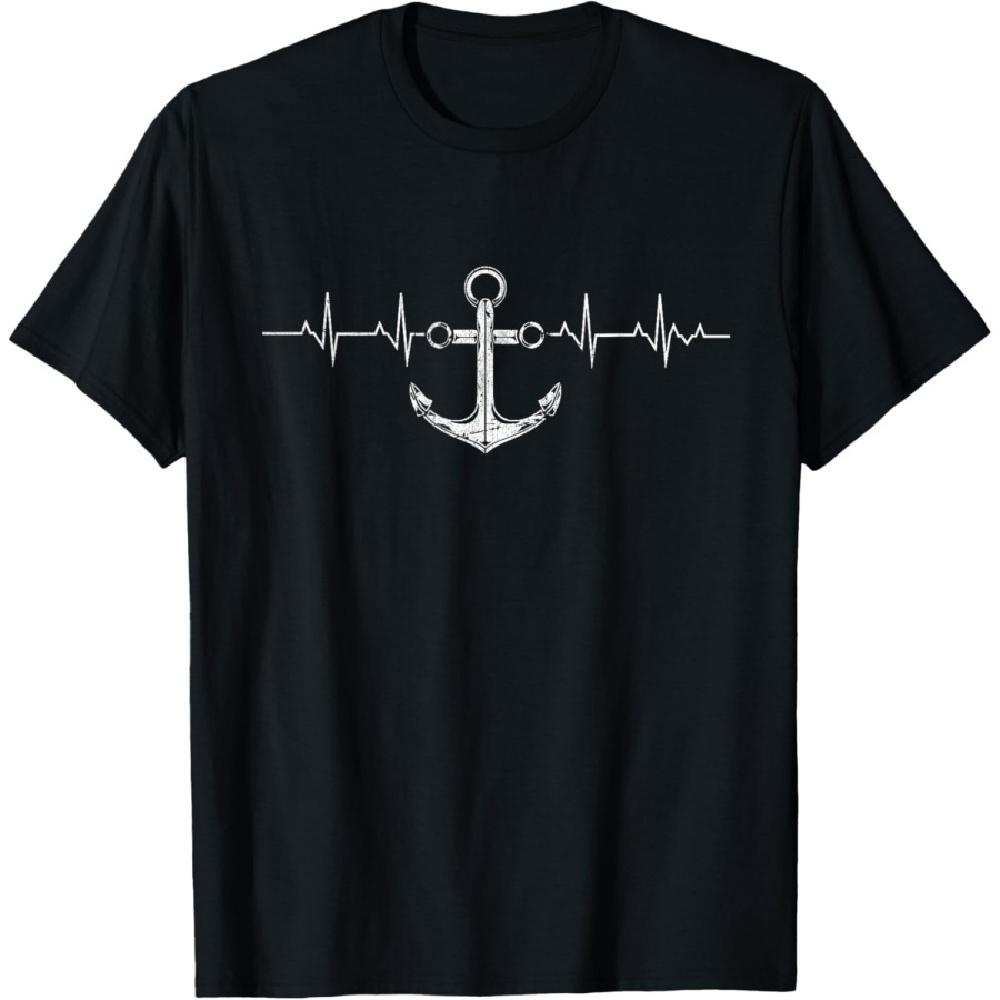 Anchor Heartbeat Sailboat Nautical Sailor Captain Sailing T-Shirt