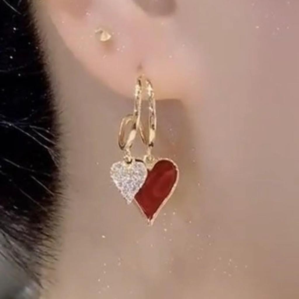 1 Pair Elegant Heart-Shaped Design Earrings Luxurious Rhinestone Inlaid Pendant Women'S Daily Holiday Wear Jewelry Accessories
