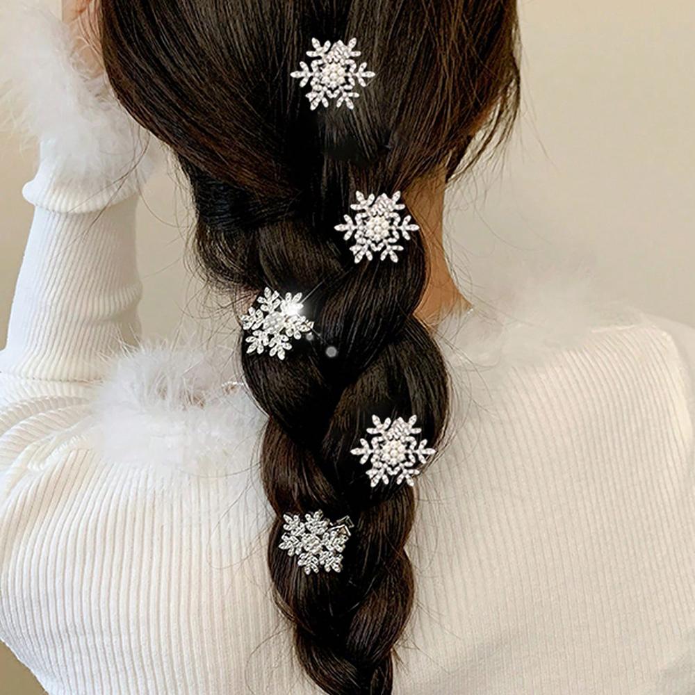 5pcs Fashion Snowflake Imitation Pearl Hair Clips Broken Hair Duckbill Clips New Year Valentine Day Gifts Women Hair Accessories