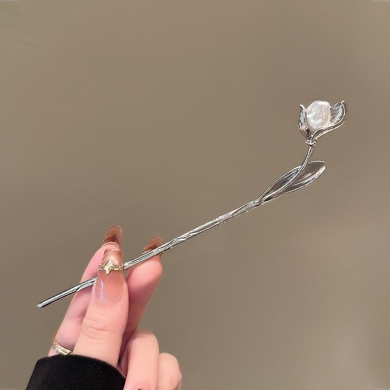 1pc Minimalist Silver Toned Floral Hair Sticks Delicate Flower Leaf Design Perfect Elegant Daily Wear Chic Hair Accessories