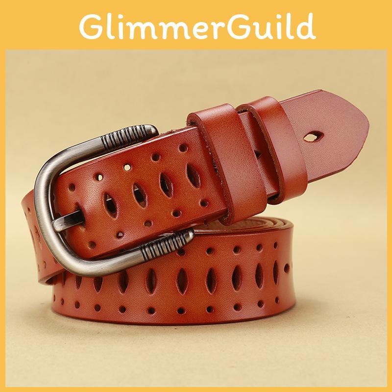 leather waist belt, hollow pattern belt, metal pin closure, casual fashion belt, adjustable leather belt, stylish waist accessory, unisex leather belt, trendy belt for women and men