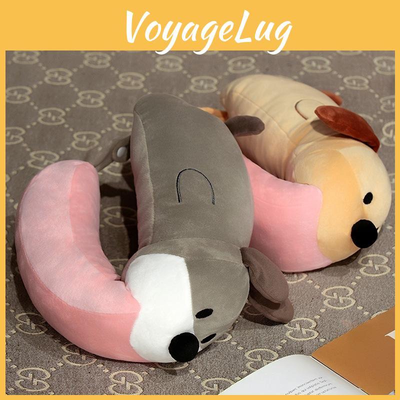 Cute Cartoon Long Tongue Puppy Design Portable Neck Pillow For Travel And Rest