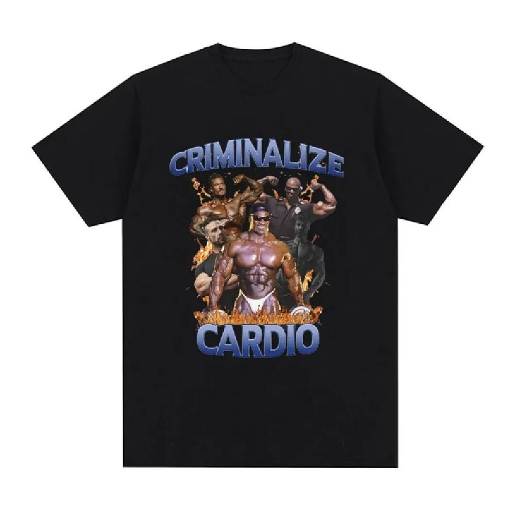 Criminalize Cardio Meme Pattern Tshirt Gym Fitness Retro Short Sleeved Tshirt Womens Fashion Hip Hop Large Tshirt