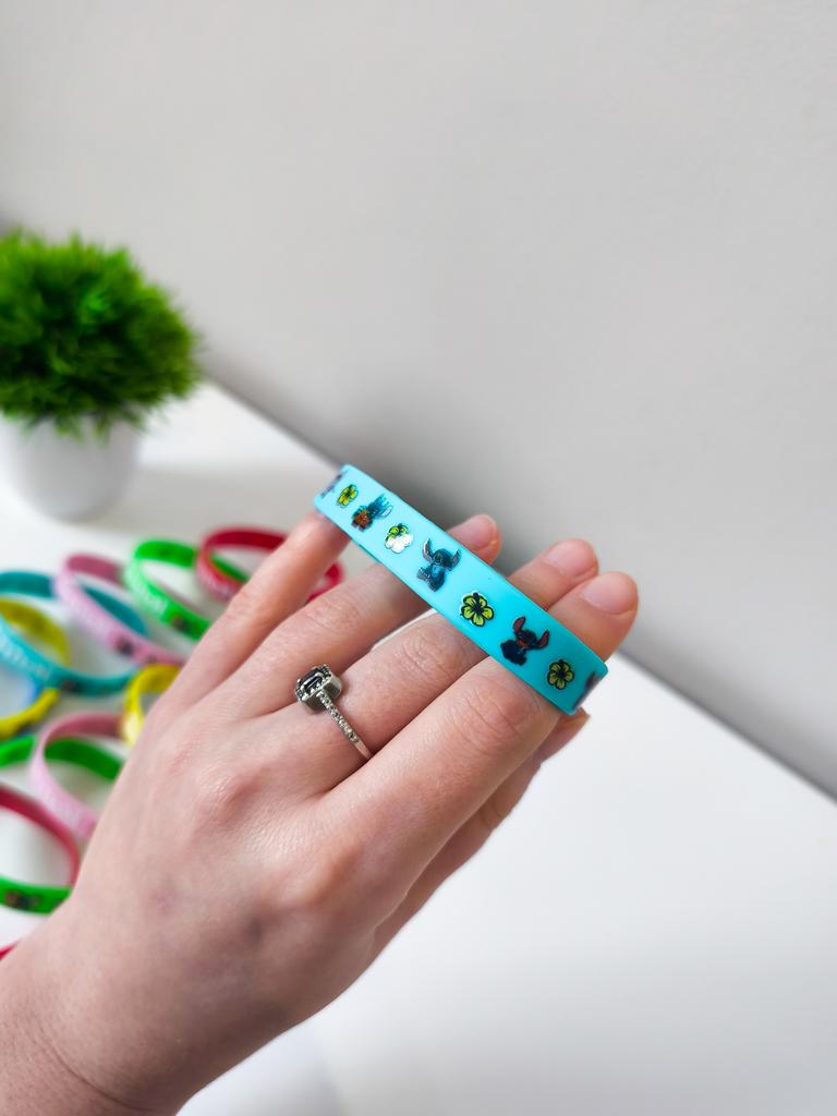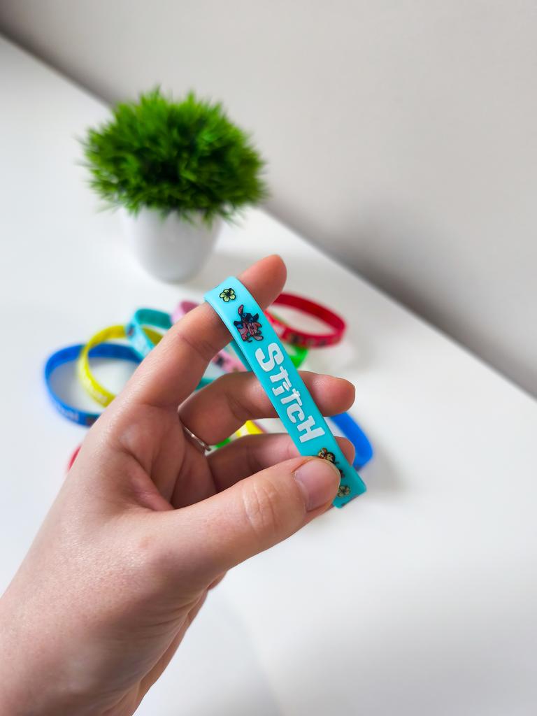 Silicone bracelets «Stitch» A bright and positive accessory for fans of the cartoon. 🔸Design: the set includes many bright colors (pink, green, blue, yellow) with recognizable Stitch prints. 🔸Material: soft hypoallergenic silicone — sits comfortably on the wrist, resistant to water and sweat. 🔸Application: can be worn individually or as a set. Excellent as a cute gift or a way to boost your mood during training.