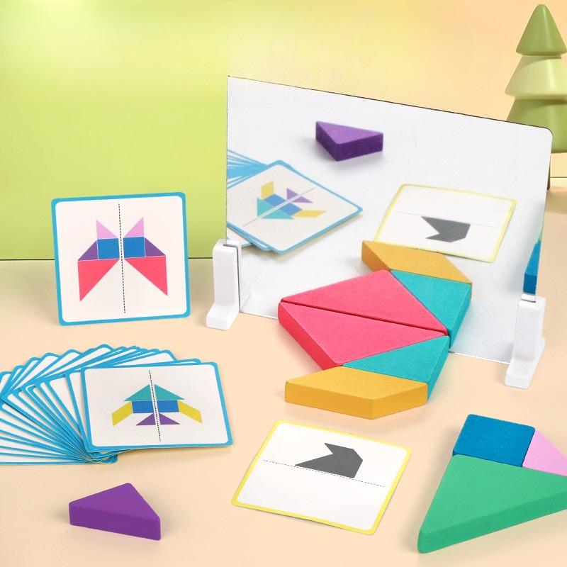 Children'S Tangram Building Block Mirror Puzzle Kindergarten Early Education Puzzle Geometric Shape Cognition Wooden Toy