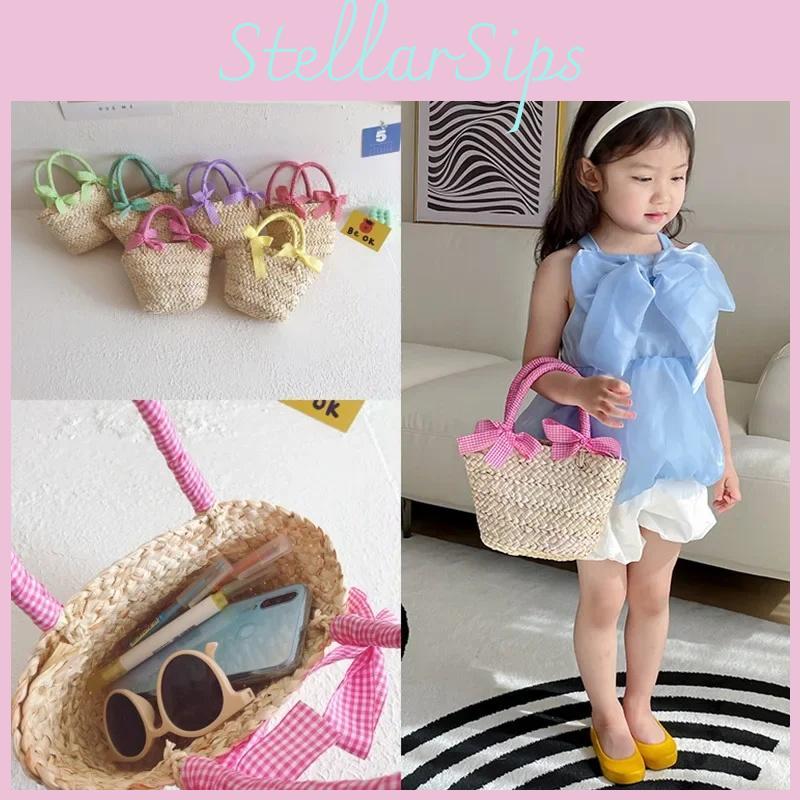 Kids Grass Weave Handheld Bag With Breathable Design For Toddler Travel And Daily Use