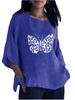 Women Fashion 3/4 Long Sleeve Top Spring&summer Round Neck Print Shirt Ladies Pullover Cotton Linen Blouse