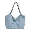 Style Large Capacity Denim Bag For Casual Daily With Embroidery And Magnetic Closure