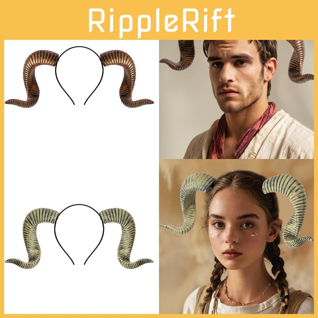 Halloween Costume Headband With Removable Curved Horns For Party Performances And Cosplay