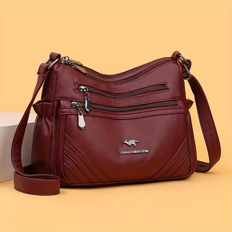 Women's Leather Crossbody Bag Multi-Zipper Pocket Purse with Adjustable Strap Textured Handbag