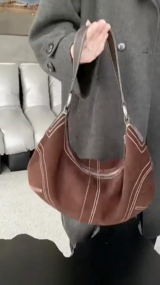 Luxury Women Suede Leather Hobo Shoulder Bag Vintage Half Moon Handbag Cross Body Daily Casual Underarm Purse Genuine Cowhide