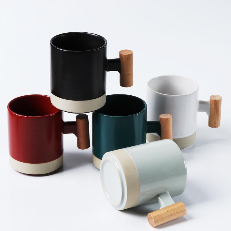 Literary Wood Handle Ceramic Mug Office Tea Cup