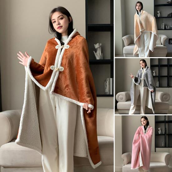 Versatile Design: Featuring a convenient button fastening, this cape blanket easily transforms from a wearable cape into a full-sized blanket. Its generous dimensions offer full-body coverage whether worn or spread out, making it perfect for multiple uses around the home or outdoors.