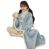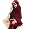 Experience ultimate comfort with this premium hooded cape blanket, crafted from plush double-sided fabric for exceptional warmth and softness. Featuring elegant white trim detailing and a secure button fastening, it stays comfortably in place while you wear it.
