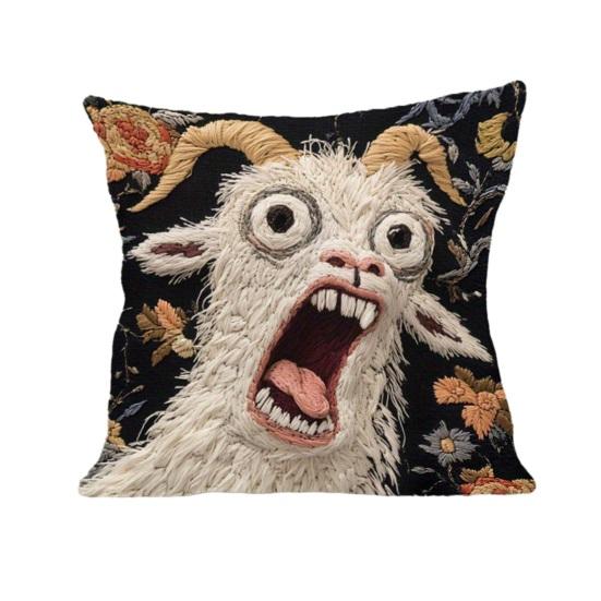 Featuring detailed 2D flat printing and faux embroidery of a charming screaming goat pattern, it adds a unique decorative flair to your sofa or bedroom. Perfect for enhancing any home decor style, this versatile pillow cover creates a warm, cozy atmosphere in living rooms, bedrooms, patios, or sofas. Elevate your space effortlessly with this multifunctional and stylish home accessory.