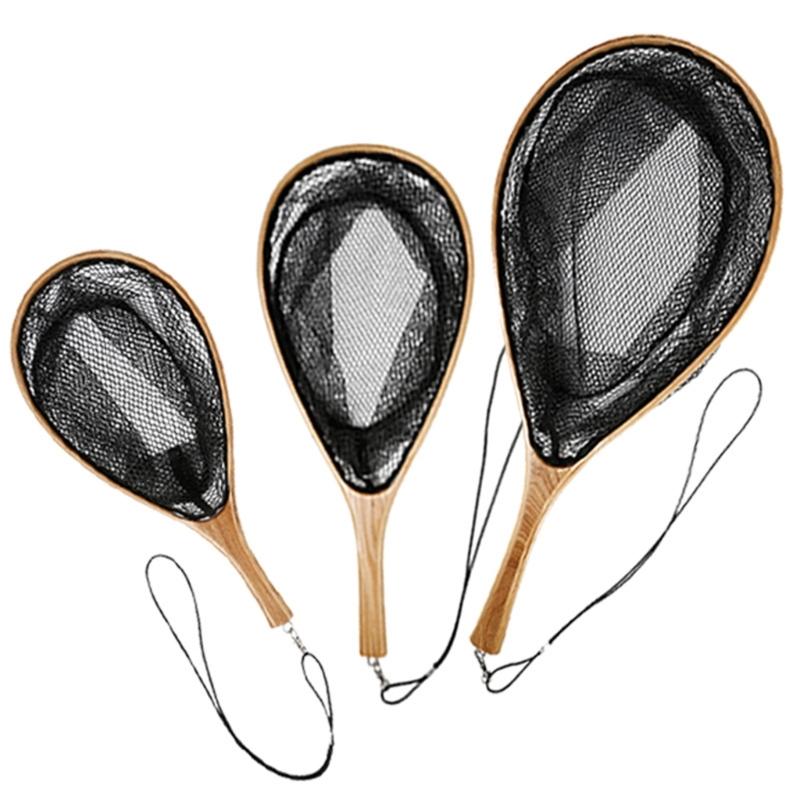 Wooden Poles Fishing Landing Net with Lanyard Fishing Net Portable for Adult Unisex Landing Net with Comfortable Handle