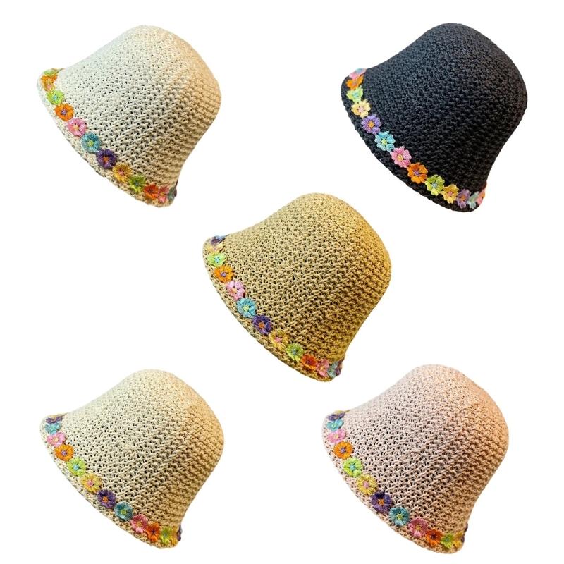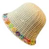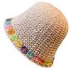 Crochet Bucket Hat with Flower Decals Summer Spring Bucket Hat Crochet Floppy Hat for Adult Teen Hat Knitted Sun Hat