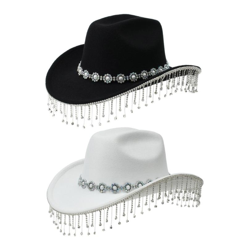 Heavy Diamond Cowboy Hats Tassels Crystal Hat for Disco House Cocktails Parties Vacation Sparkly Tassels for Comedian