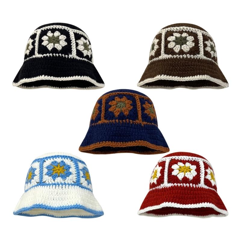 Summer Sunproof Crochet Bucket Hat Ladies Spring Commute Camping Fisherman Cap with Flower Pattern for Girlfriend