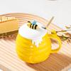 Cute Little Bee Ceramic Mug with Lid Spoon Coffee Cup Student Children Breakfast Milk Drinking Cup