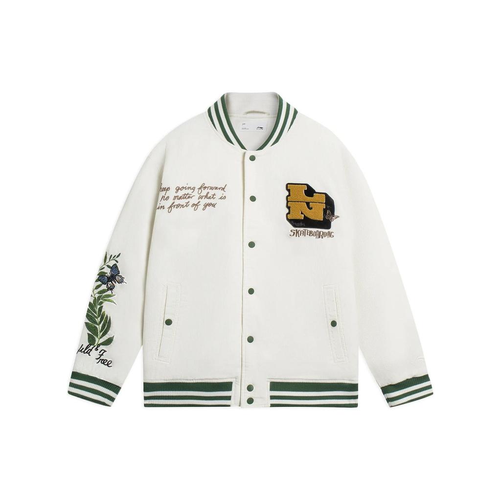 Li Ning Logo Print Single-Breasted Long Sleeve Baseball Jacket Men Jackets White AJMR121-4