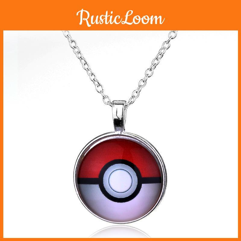 Poke Ball Pendant Necklace With Gemstone Embellishments For Unisex Gift