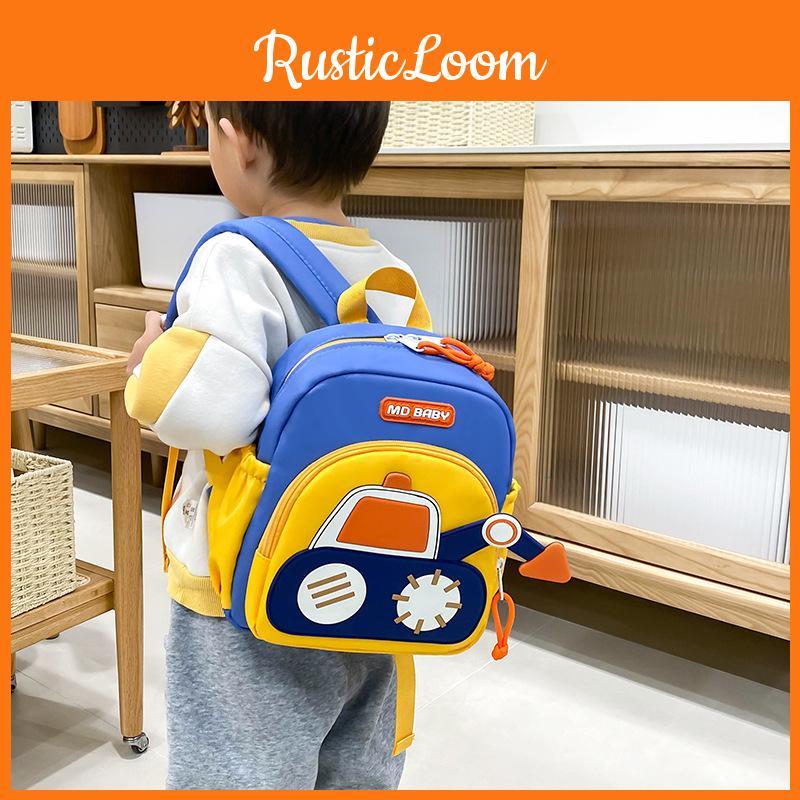 Cartoon Excavator Kids Backpack With Breathable Nylon For Preschool Children