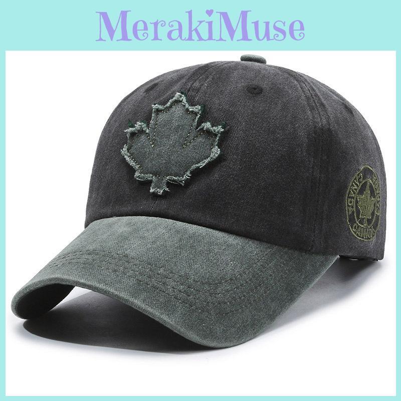 Fashion Waterwashed Cotton Baseball Cap With Maple Leaf Decoration Design For Outdoor Wear