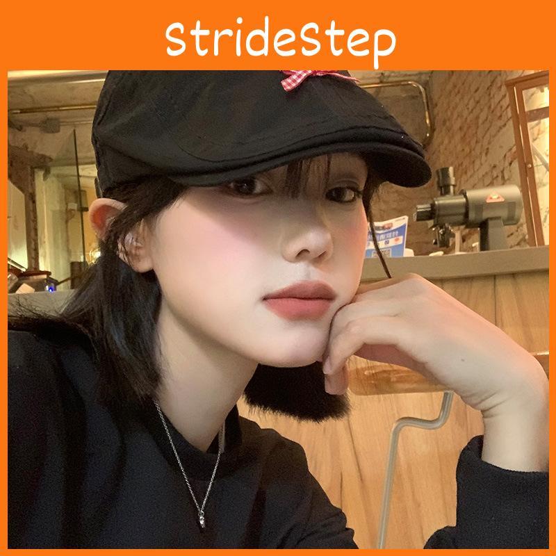 Stylish Fall Forward Cap For Women Black Bowknot Design Cotton Blend Baker Hat