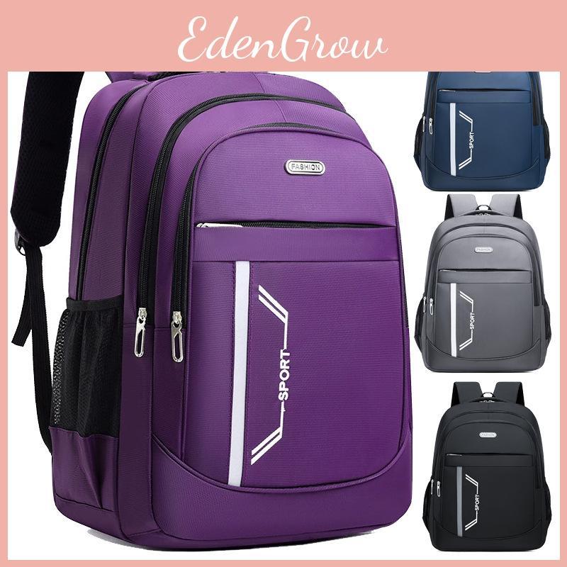 This unisex school backpack features durable Oxford fabric with a striped pattern and embossed leather accents, offering a stylish look, curved shoulder strap system for comfort. Ideal for daily use, it supports laptops up to 16 inches and is easy to maintain by wiping clean with a damp cloth.