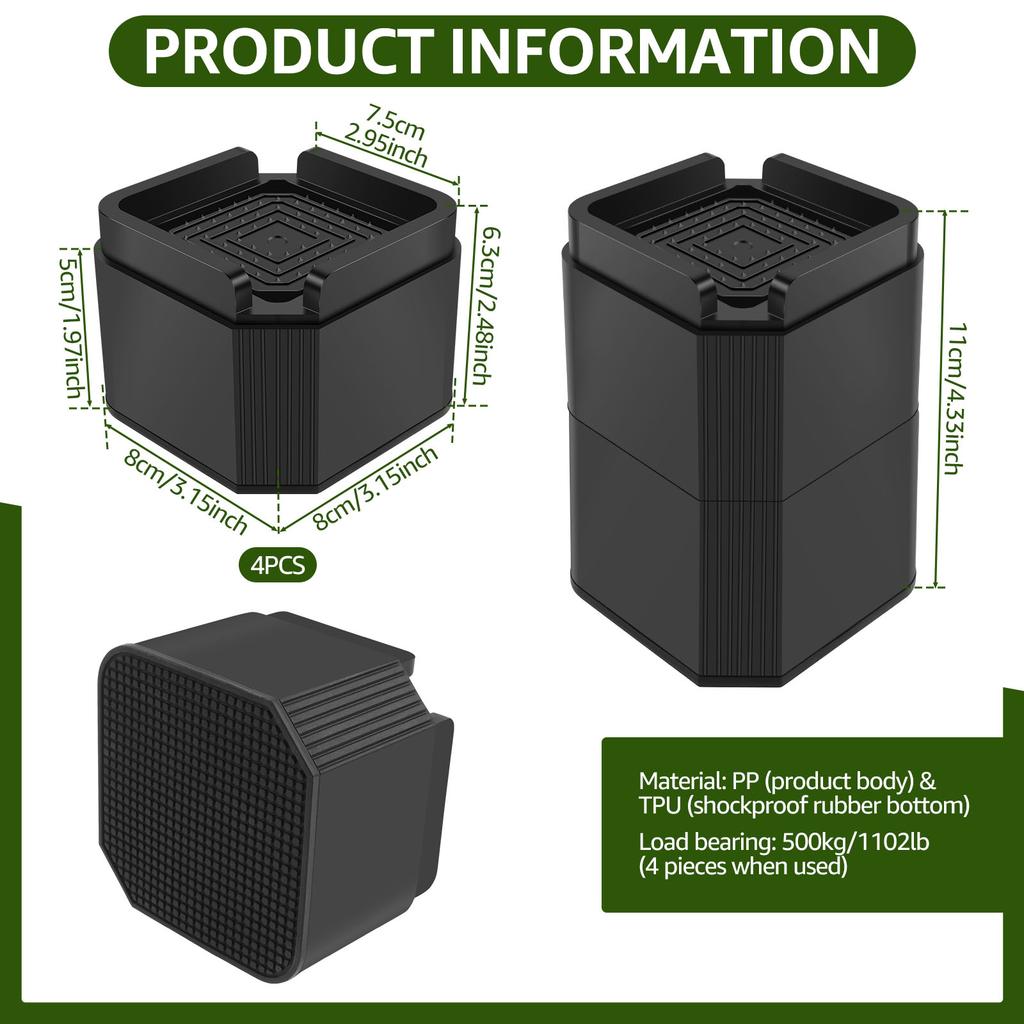 4Pcs Furniture Riser Stackable Bed Chair Table Heightening Foot Pad with Nonslip Base Enduring Stable Desk Leg Raising Block