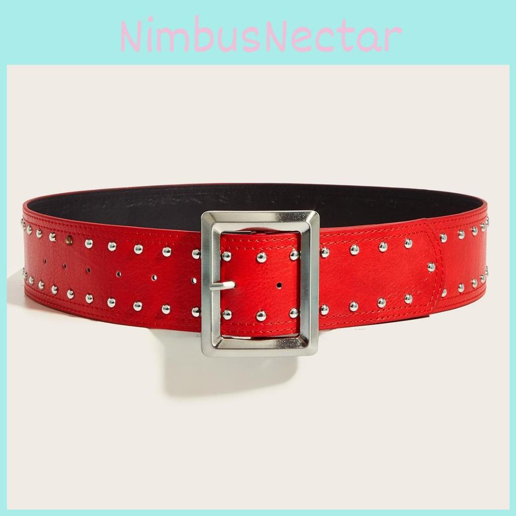 This fashion-forward belt features a 5.8cm wide faux leather strap with double-stitched lines and metal nail embellishments, delivering a bold, edgy look. Equipped with a durable alloy pin buckle and a 105cm length, it supports everyday casual wear. Ideal for enhancing streetwear or alternative outfits. Wipe clean with a damp cloth for maintenance.