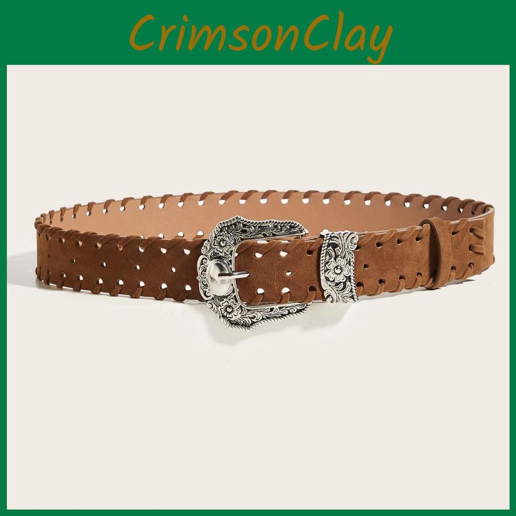 Fashionable Carved Metal Buckle Women Casual Suede Waist Belt For Daily Office And Leisure