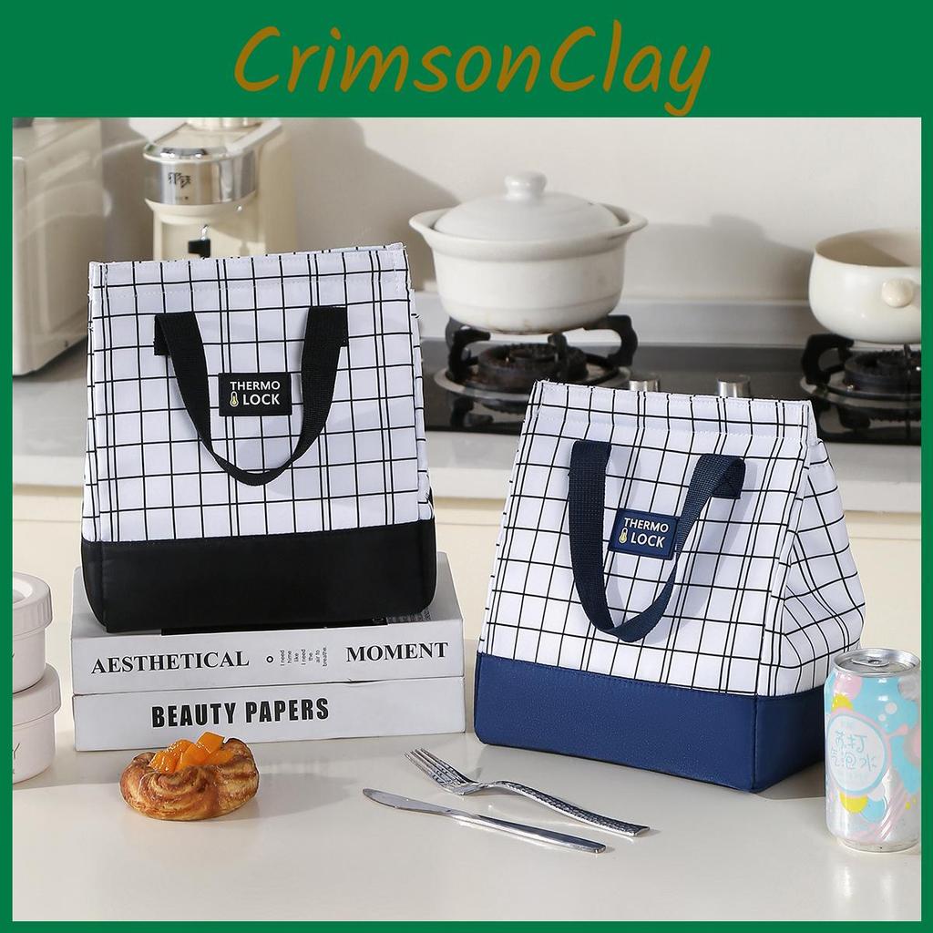 Japanese Style Grid Insulated Lunch Bag With Large Capacity And Waterresistant Material