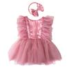 Handmade Tulle Baby Princess Dress with Matching Bowknot Headband Photo Props Newborns Girls Photography Accessories