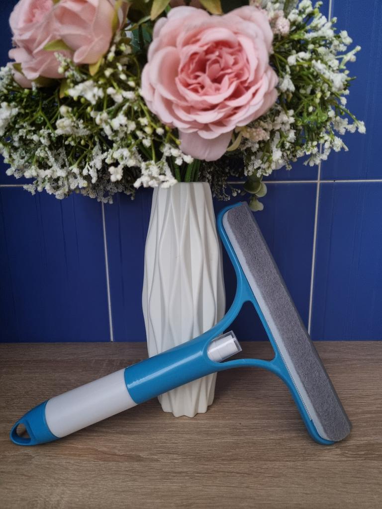 It's very complete 😃 It comes with a liquid reservoir 💧 that we can refill with any cleaning product we wish to use, glass cleaner, soapy water 🫧, vinegar what we usually use in our window cleaning 🪟 mirrors 🪞 also for tiles 👌 Good quality 💯 Very complete 😸 Affordable price 🤑 Correct packaging 📦 Fast shipping ✈️