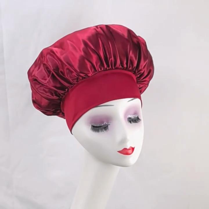 Women Night Sleep Hair Caps Silky Bonnet Satin Double Layer Adjust Head Cover Hat For Curly Springy Hair Styling Accessories
