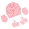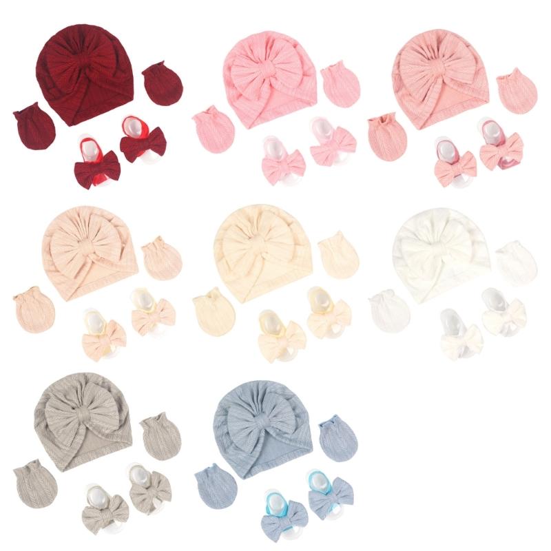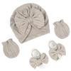 Baby Turban Hat Hospital Nursery Hat with Gloves & Feet Bowknot Newborns Soft Bonnet Caps Set for Baby 0-3 Month