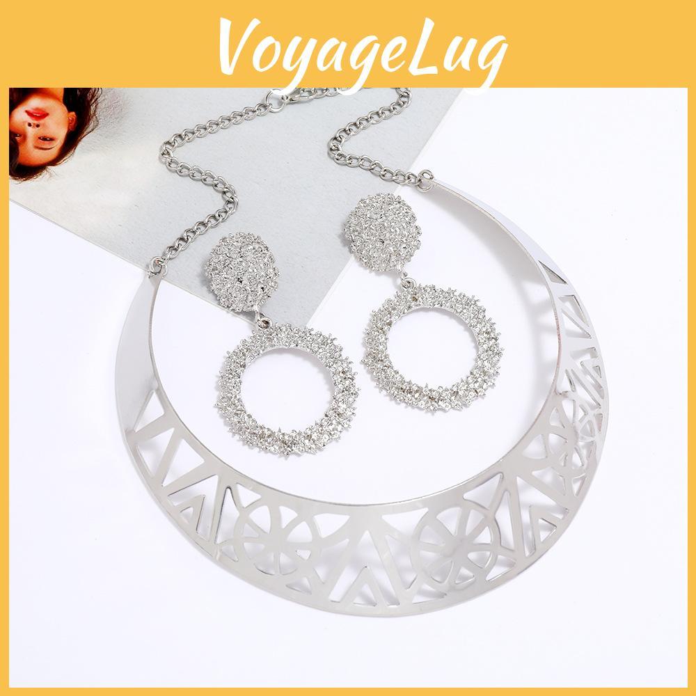 Fashion Color Solid Hollow Design Women Metal Necklace Collar Round Set Earring