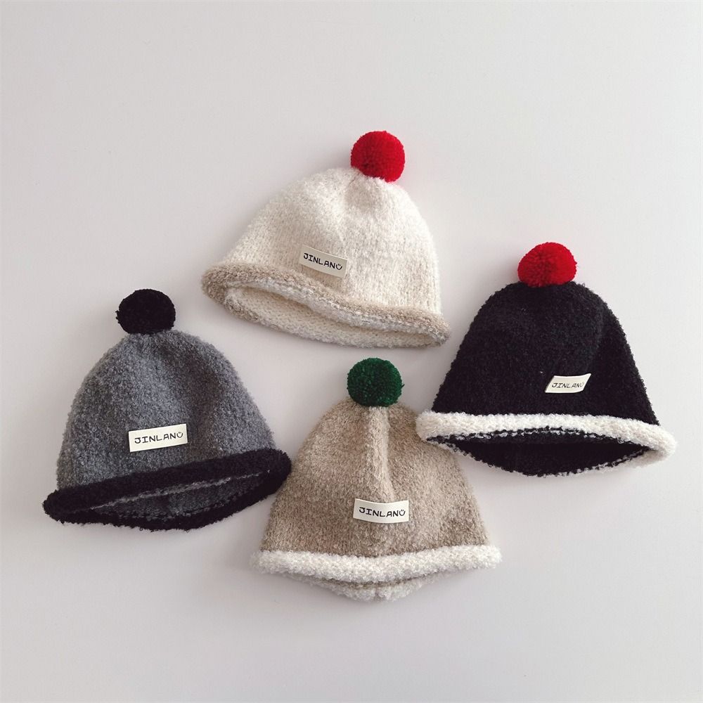 Cute Plush Ball Children Melon Caps Woolen Yarn Baby Knit Hat Korean Crochet Bonnet Girls Boys