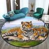 Cute Tiger Round Rug Wild Animal Carpet Non-slip Floor Mat for Living Room Bedroom Playroom Bathroom Decor Soft Circle Doormat