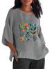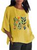 Women Fashion O Neck Print Shirt Spring&summer 3/4 Long Sleeved Top Ladies Cotton Linen Blouse