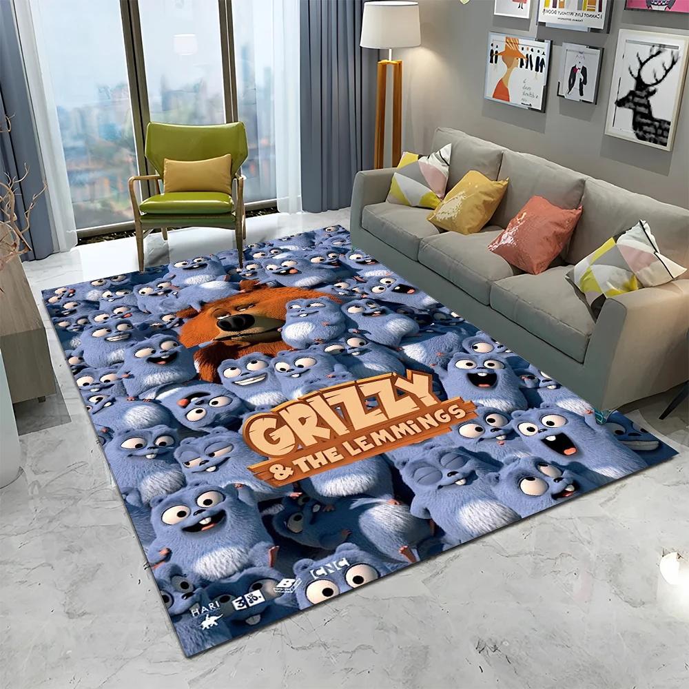 3D Grizzy and The Lemmings Cartoon Carpet Rug for Home Living Room Bedroom Sofa Doormat Decor,kids Area Rug Non-slip Floor Mat