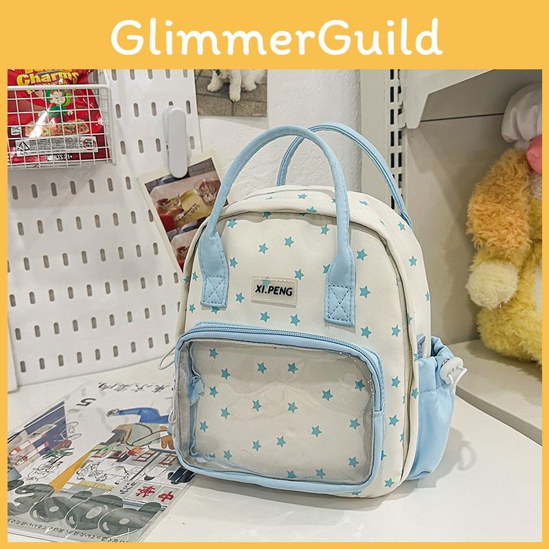 Fashionable Star Patterned Student Backpack With Transparent Compartment For Daily Use