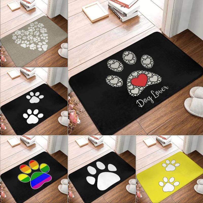 Dog Lover Heart Paw Print Red Heart Center Non-slip Machine Washable Fluffy Plush Entry Doormat Pet Owner Home Decor Carpet Rug