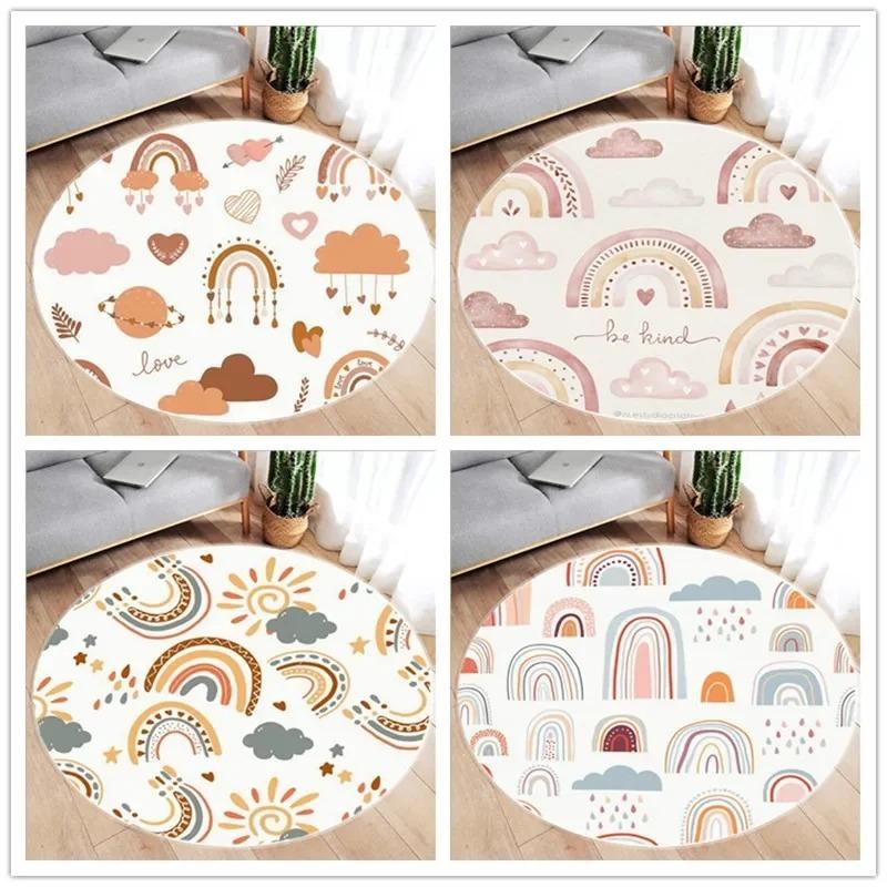 Cute Cartoon Rainbow Printed Circular Carpet Washable Round Floor Mat Living Room Bathroom Kitchen Rug Home Decoration Yoga Mat