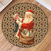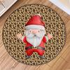 Cartoon Vintage Leopard Santa Claus Round Carpet Mat Rug Christmas Gift Bag Holly Home Decoration Living Room Bedroom Party