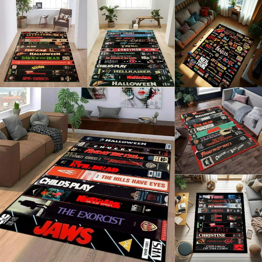 Vintage Horror VHS Film Movies Print Rug Retro Carpet for Living Room Bedroom Man Cave Game Room Floor Mat Non Slip Decor