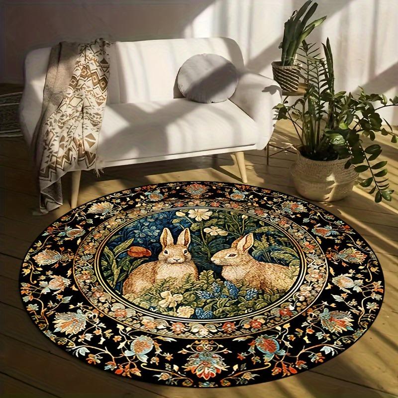Easter Retro Floral Rabbit Pattern Round Area Rug Bedroom Living Room Garden Decor Living Room Carpet Decorative Floor Mat
